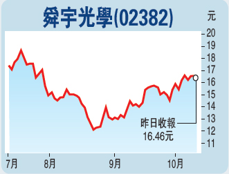 舜宇光學出貨量創新高
