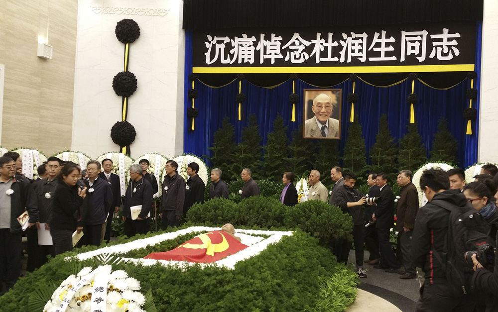 23日,杜潤生追悼會在北京八寶山殯儀館大禮堂舉行。大禮堂擺放了習近平、李克強、張德江、俞正聲、劉雲山、王岐山、張高麗等黨和國家領導人敬送的花圈,江澤民、胡錦濤等敬送的花圈也依次擺在現場。中央和國家機關有關部門負責人,杜老生前好友和家鄉代表前來送別。