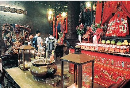 圖:香港仔天后廟的千里眼放在天后像的右邊