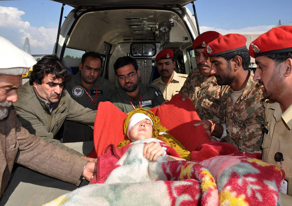 巴基斯坦軍方發言人巴傑瓦說,山泥傾瀉亦正阻礙某些區域的救援工作,正在努力清理道路以便通行。巴方已出動直升機和軍機用來運輸救濟物資和接載傷員,軍方工程師亦正修復因地震觸發山泥傾瀉而受到破壞的通訊線路。軍方亦派發糧食和毛毯給無法接近但傷亡及損毀最嚴重的西北和北部地區的民眾。