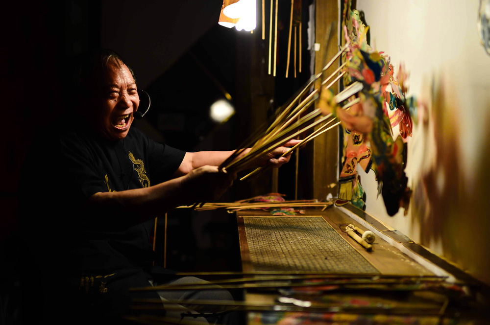 圖:范正安表演皮影戲《泰山石敢當》   資料圖片