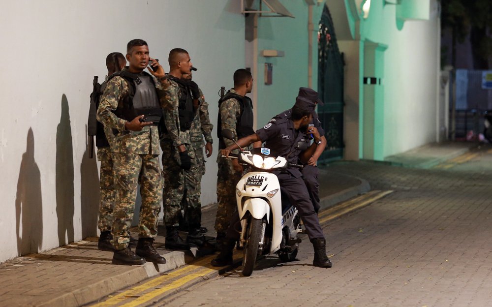 圖:馬爾代夫安保人員2日在總統官邸附近巡邏」美聯社
