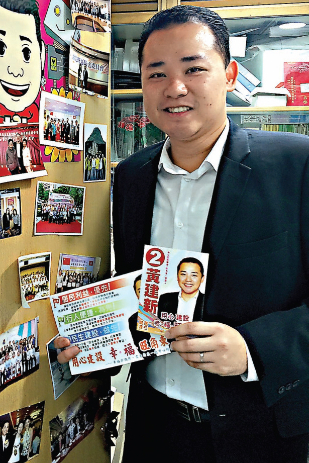 圖:旺角東現任區議員黃建新競選連任\大公報記者張婕舒攝