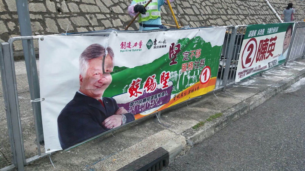 圖:蘇錫堅的宣傳橫額一夜之間全數被毀\市民提供