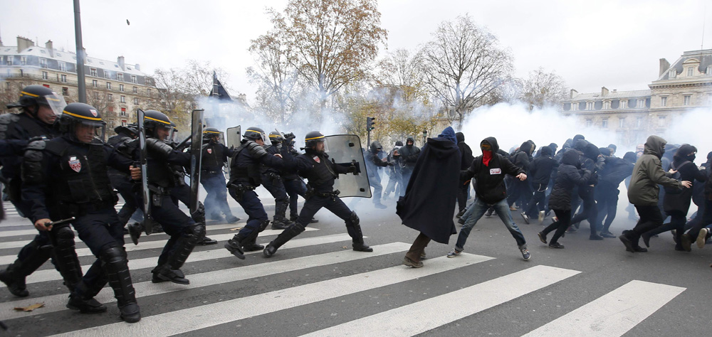 這起警民間的暴力衝突發生在巴黎市中心的共和廣場,這個廣場留有許多悼念13日巴黎恐襲130名死難者的鮮花和蠟燭。巴黎恐襲後,當局宣布進入緊急狀態禁止所有集會,示威者則不顧禁令,矢言捍衛自由及地球氣候,齊集共和廣場示威。警員到場執行禁令,最終演變成暴力衝突。