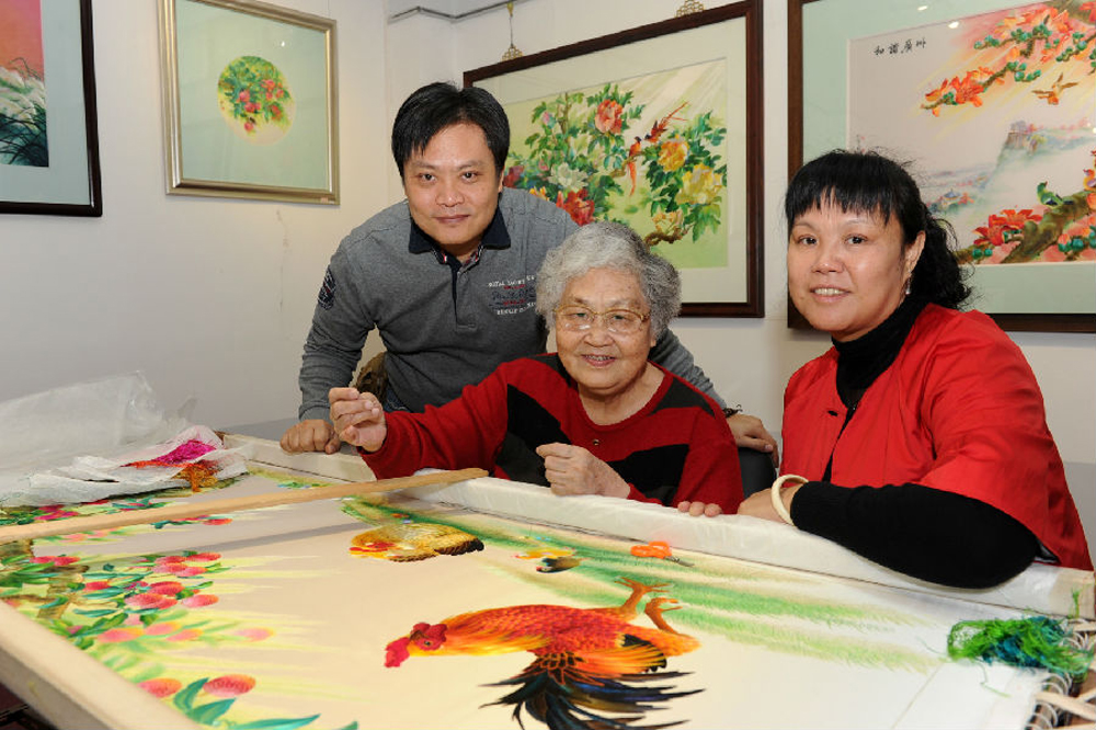 「哎,想當年……」一聲嘆息,說不盡78歲高齡的廣繡大師陳少芳對廣繡輝煌時期的留戀、對廣繡技藝的堅守,以及對廣繡未來的擔憂。1962年入行的陳少芳,經歷過20世紀60年代廣繡的再度興盛;也曾在「文革」期間艱難維持;亦見證了「文革」結束後十年廣繡的突飛猛進;然後看?一個又一個廣繡老藝人退休,廣繡基本陷入停頓;儘管在進入國家級非物質文化遺產名錄後再度被關注,但後繼無人的局面難以扭轉。