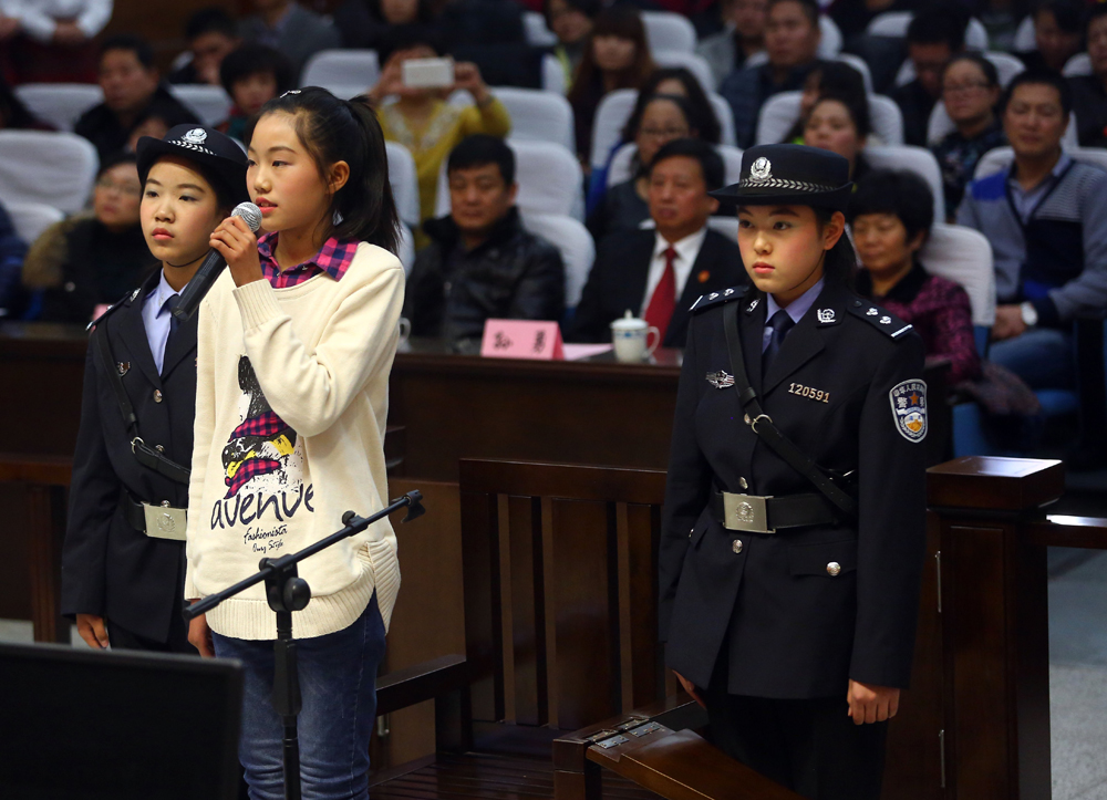 12月3日,天津市北辰區「學法守法 護我成長」2015年中小學生模擬法庭現場展示活動在北辰區人民法院舉行。學生們通過模擬法庭「審理」發生在身邊的案件,了解法律知識,增強法律意識。 新華社