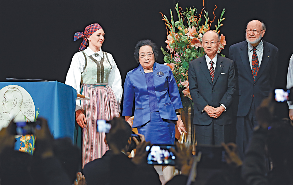 【大公報訊】2015年諾貝爾生理學或醫學獎得主、中國女科學家屠呦呦於北京時間12月7日晚在瑞典卡羅林斯卡醫學院用漢語發表「青蒿素,中醫藥給世界的一份禮物」的主題演講。屠呦呦在演講中講述了40年前中國科學家發現青蒿素的艱苦過程,也談到了自己中西醫學習的背景對成功發現青蒿素藥物起的作用,稱傳統中醫藥是一個豐富的寶藏。她更強調,青蒿素發現是集體的功勞,諾獎是對全體中國科學家團隊的嘉獎和鼓勵。
