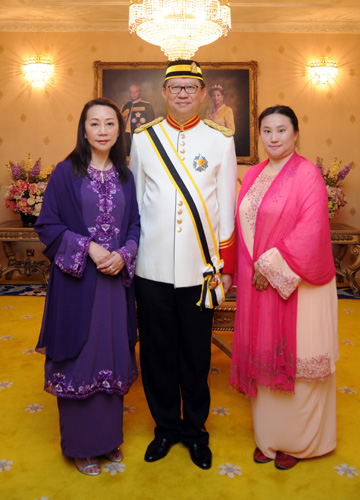圖:元海(中)獲封拿督,與太太(左)和女兒分享喜悅