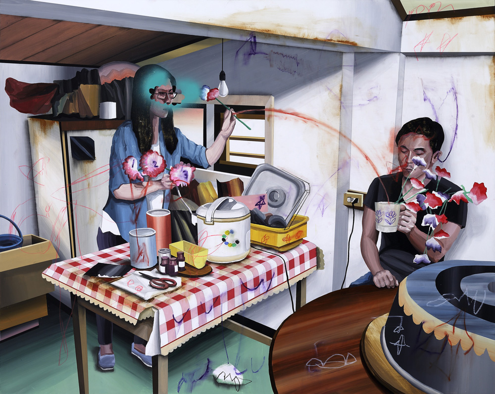 時永駿多年來熱愛收藏的古董玩具和老物件,很多時候成為了畫作中的主角。作品帶?一種挑戰現實生活中那種一成不變的態度,彷彿要揭示作者和觀者潛意識裏面某種深藏的慾望與反叛。