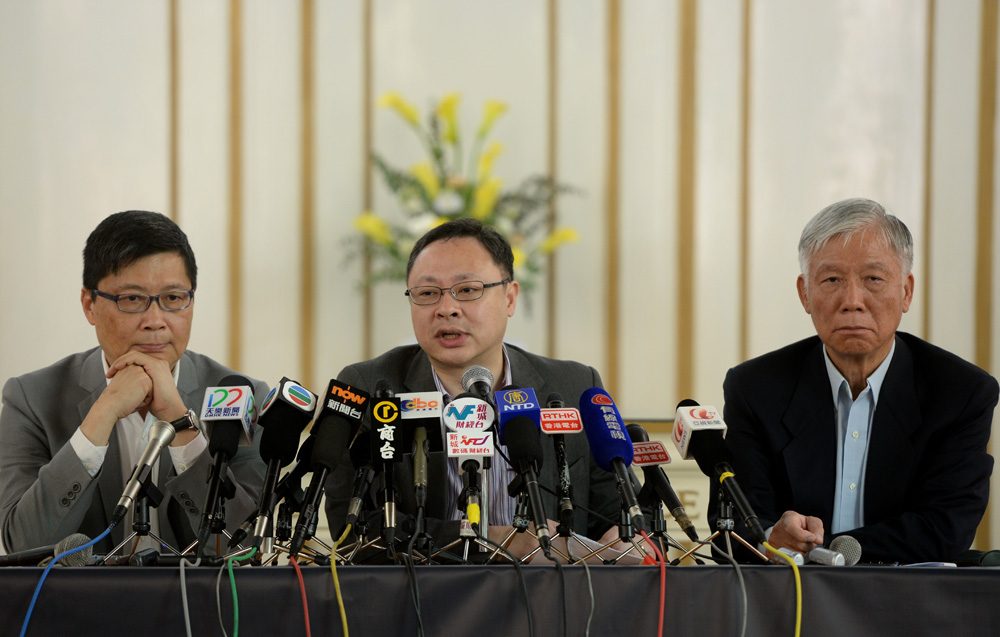 圖:佔中發起人陳健民(左起)、戴耀廷、朱耀明,多次在公開場合表明佔中不可能不犯法\資料圖片