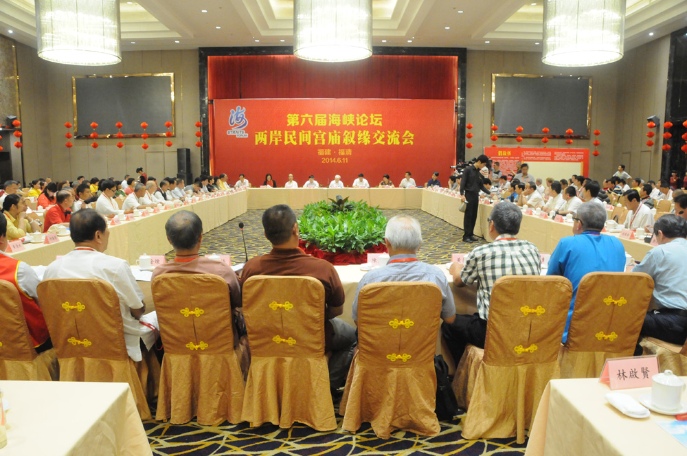 圖:第六屆海峽論壇兩岸民間宮廟敘緣交流會十一日在福清千禧大酒店舉行,近三百名兩岸宮廟代表歡聚一堂/史兵攝