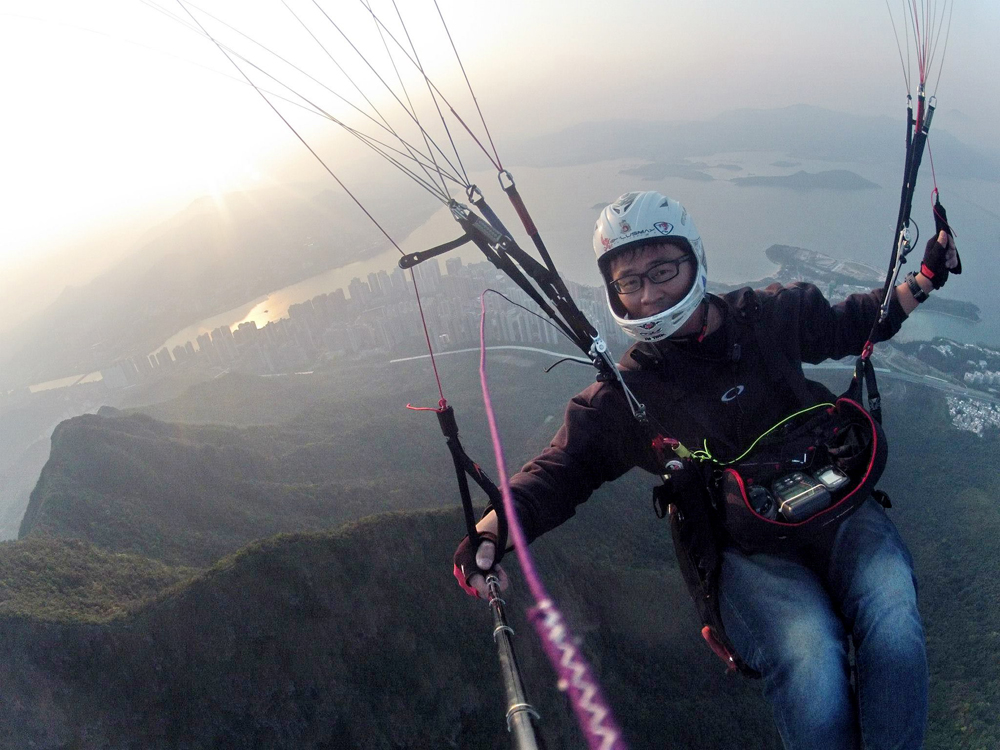 38歲的袁偉傑,年輕時已參與極限運動,玩過三項鐵人、越野爬山單車等等,多年來玩盡水陸運動,感覺始終及不上天空翱翔那麼舒暢痛快。為飛得更高更遠,袁偉傑不斷強化滑翔傘技術,更前往美國深造,考取全球認可的滑翔傘教練牌照。