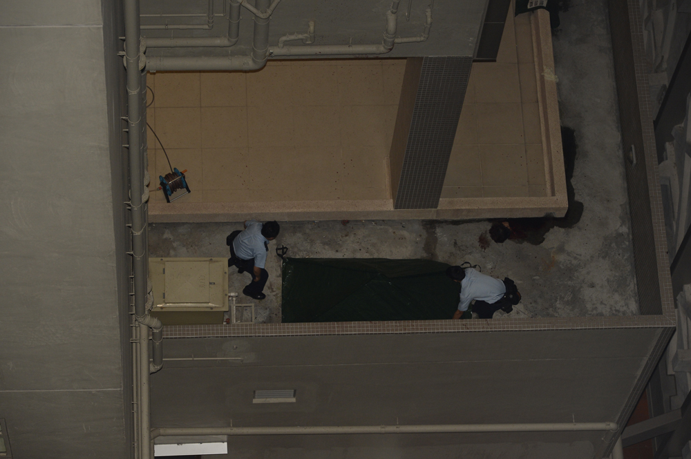 期間,警員用小帳篷及膠袋,遮掩屍體殘肢,以免令附近大廈高層單位住戶不安,其後再安排仵工到場,將屍體移送殮房。警方正設法聯絡死者家人來港善後,並調查女事主尋死原因。案件暫列有人從高處墮下,初步調查事件無可疑。