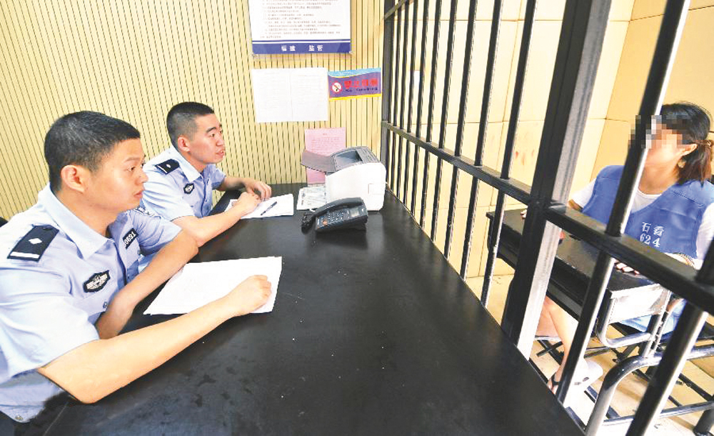 圖:據悉,此次詐騙案涉及內地、台灣、肯尼亞、印尼等多個國家和地區。7月8日,泉州石獅市公安局民警在石獅看守所訊問特大跨境電信詐騙案犯罪嫌疑人黃某(右)/網絡圖片