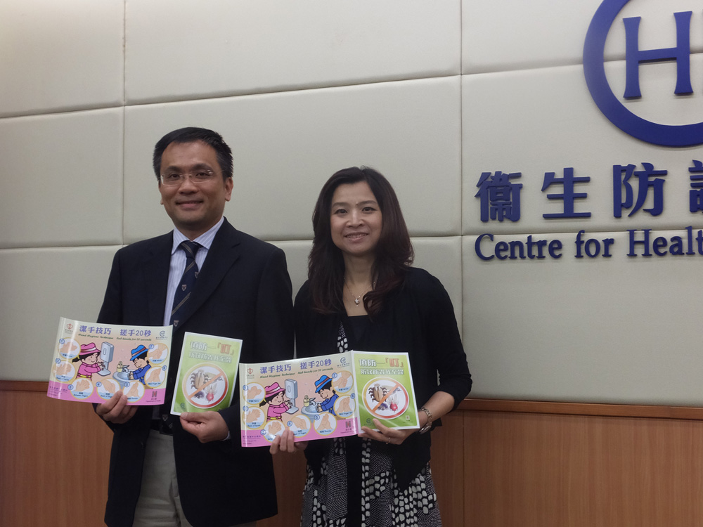 圖;衛生署助理署長(健康促進)馮宇琪(右)及衛生防護中心感染控制處主任黃天祐(左)昨在記者會上公布「個人及環境衛生調查2014」的結果」本報記者林丹媛攝