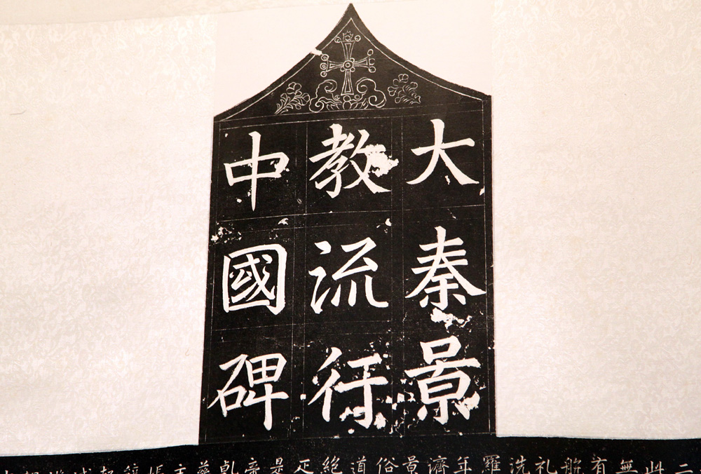 景教傳入中國的最早物證,是一塊在明朝天啟五年(一六二五年)於長安(今西安)出土的「大秦景教流行中國碑」。「大秦」指昔日的東羅馬帝國,「景教」是東正教一個支派,傳入中國後才改此名,含有光明宗教的意思。這塊石碑刻於唐朝建中二年(七八一年),高近三米,現藏於西安碑林博物館,碑文已成為中國基督教史的重要文獻。   「大秦景教流行中國碑」由景教教士景淨撰文,呂秀巖書寫,共有一千七百八十個漢字,下方還有幾十個古敘利亞文,記載教士阿羅本於唐貞觀九年(六三五年)抵達長安,獲唐太宗接見及允許興建「大秦寺」。碑文引用儒、道、佛經典和中國典故來闡述景教教義,講述人類的墮落、彌賽亞的降生和救世主的事跡等。