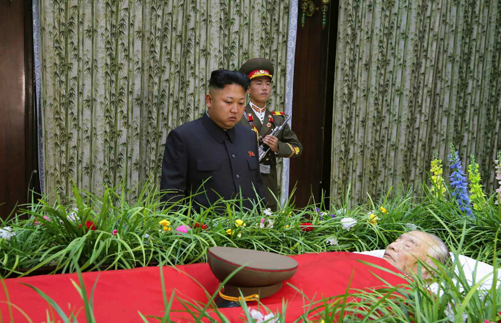 圖:朝鮮領導人金正恩9日往平壤一家殯儀館弔唁逝世的全炳浩,表情悲痛 /朝鮮《勞動新聞》