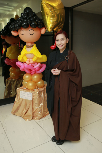 圖:鄺美雲穿上佛教海青縵衣出席佛教法會
