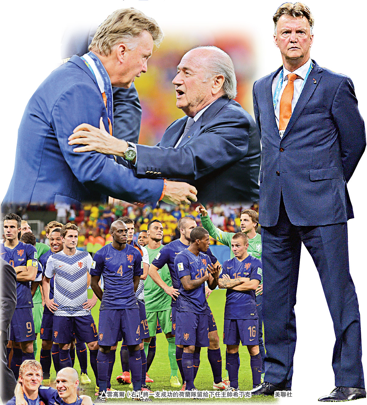 【大公報訊】綜合外電巴西十三日消息:雲高爾在「橙軍」荷蘭的主帥生涯終以一個季軍結束,雖然未能一舉拿下冠軍,但他帶領荷蘭於法定時間內7戰5勝2和(和局後兩次互射十二碼1勝1負)的不敗戰績,絕對說得上成功,即將馬不停蹄到曼聯赴任的雲帥亦表明,希望可以把荷蘭的成功複製到曼聯身上。
