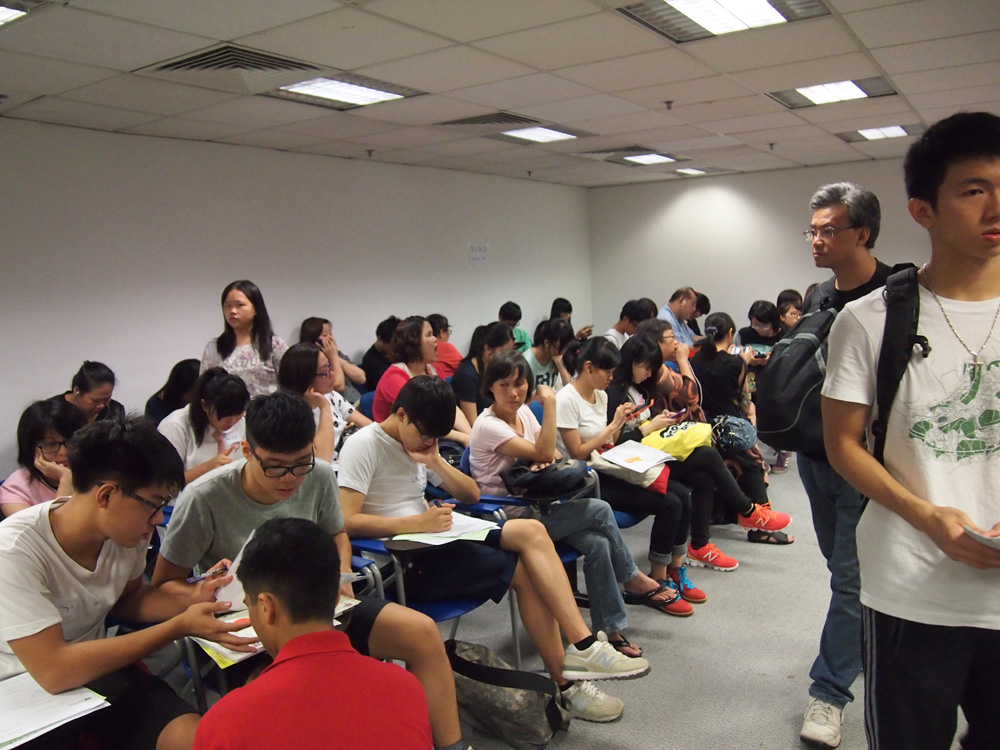 文憑試放榜,有資格爭取政府資助學位的學生高達27900人,剛達標及未達標的考生均需自尋「出路」。香港教育學院的自資全日制經評審本地學士學位及副學位課程昨日於九龍塘生產力大樓設即場面試招生,吸引逾千名考生報讀。教院學生事務長余嘉明指出,今年報讀自資學位課程的人數較往年少,但報讀副學位課程者則較多。