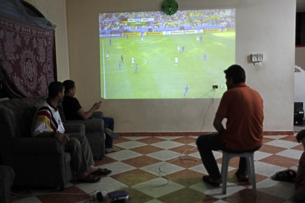 圖:幾個巴勒斯坦球迷躲在家裡看世界杯決賽/法新社