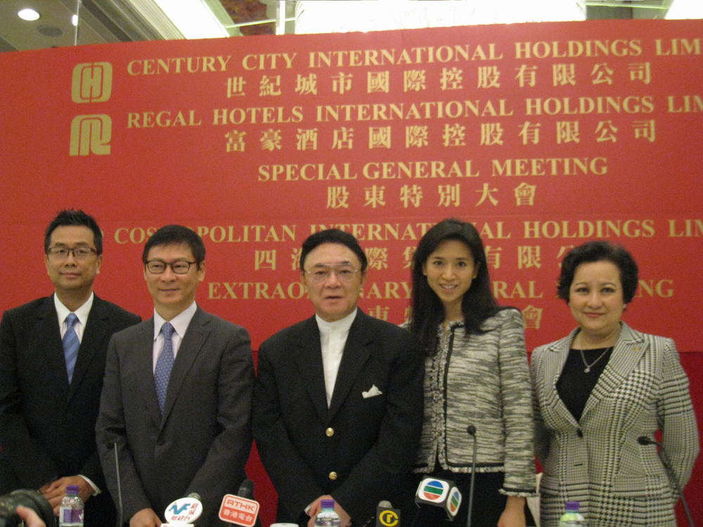圖左起:富豪國際非執行董事黃寶文,執行董事范統,主席兼執行總裁羅旭瑞,副主席兼董事總經理羅寶文,首席營運官兼執行董事楊碧瑤