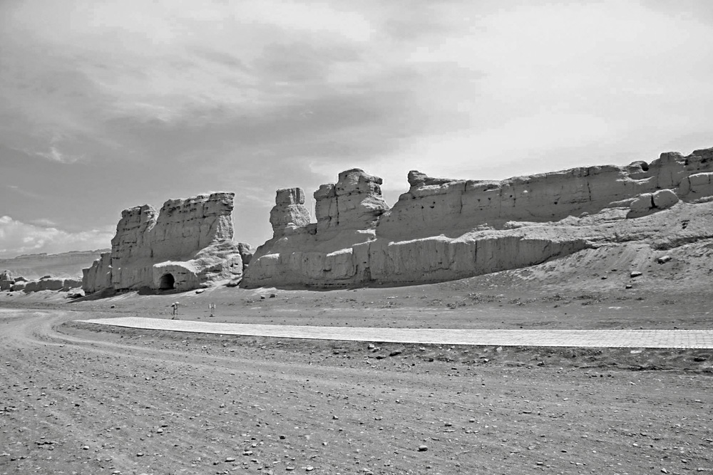 滄桑巨變,古城裡找不到除了泥土建築之外的一點遺跡,難道這裡過去也是如此乾旱,我不信。果真如此,這裡大量的人口如何棲息。我更願意相信,這裡在古代是一個碧水環繞、樹木?鬱的地方。實際也正是如此,古時的高昌氣候溫暖,地處天山南北孔道,絲綢之路北路要衝,這裡自古宜蠶,宜穀麥種植,著名土產有赤鹽、白鹽、葡萄、凍酒、刺蜜、白麵、棉布和絲織品。中西使節、商客和僧侶過往頻繁,成為漢唐間中西政治、經濟、文化交流的重要樞紐。它的衰亡更像是一個謎,客觀的原因是這裡後來不斷遭受戰爭的混亂,歷經高昌郡、高昌王國、西州、火州等長達一千三百餘年的變遷,終於在公元十三世紀末毀於戰火,逐漸廢棄。但是城的消亡為什麼會帶來大量的水土流失,是因為外部的長期乾旱對古城的逐步蠶食,還是因為古城對水資源的破壞最終導致城市的消亡,我不得而知。不久前我去位於河西走廊的敦煌莫高窟遊覽,坐在窟外的椅子上,看到近在咫尺的黃色沙丘已經逼近這處遺址,我似乎找到了一點點答案。沙漠包圍了古城,外國的掠奪者也在覬覦?古城,十九世紀末至二十世紀初,俄國人克列緬茨、德國人格林韋德爾和勒科克、英國人斯坦因,以及日本人桔瑞超等,先後到高昌劫掠走大量的文物。二十世紀的四十年代,還有一支德國的考察隊在古城堡內的東南角盜掘出一方「北涼承平三年(四四五)沮渠安周造寺功德碑」,沮渠安周是在高昌建立流亡政權的北涼王,這裡曾是王室的寺院。此刻,我彷彿看到駱駝載?的滿車珍品正離古城越走越遠,沙土路上留下一排排深深的車轍。充滿?西域風格的歌謠在曠遠的沙漠中回響,穿透時空,有點悲愴,是古城的哀歌。大漠的落日下是血色的黃昏,宗教沒有給古城帶來福祉,卻可以讓每一個逝去的靈魂得以安息。