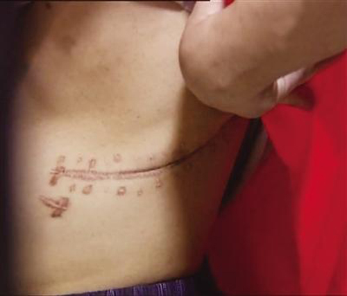 圖:賣腎者展示左腎摘除後遺留的疤痕/網絡圖片