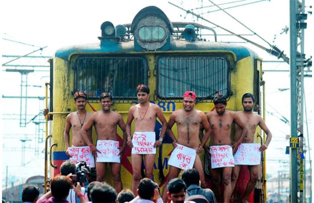圖:印度學生裸體抗議「國考」/《印度時報》