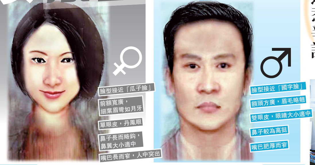 從曝光出來的兩張中國男女大眾臉來看,男性大眾臉與傳統觀念的「國字臉」比較貼近,額頭方廣,眉毛略翹,雙眼皮,眼睛大小適中,炯炯有神,而鼻子較為高挺,鼻翼大小逼近黑眼珠內側垂直線。從嘴巴看,男性大眾臉的嘴巴,卻是肥厚而窄,給人以非常謹慎的感覺。