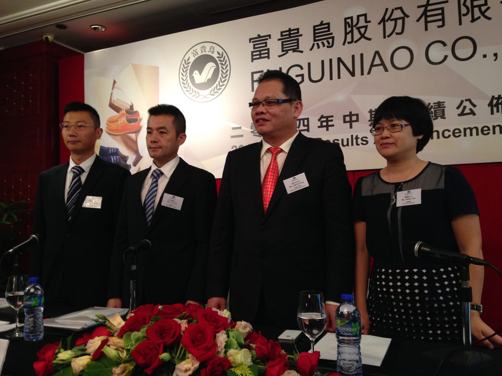 截至2014年6月30日止6個月,富貴鳥錄得溢利約2.25億元,按年增7.6%。總收入達11.36億元,較2013年同期上升4.7%,其中50.6%來自女裝鞋履,28.9%來自男裝鞋履,19.8%來自男裝服飾,0.7%來自皮革配飾,收入分布與去年相若。毛利率則微升1.3個百分點至39.9%,中期息截止過戶日為10月17日。