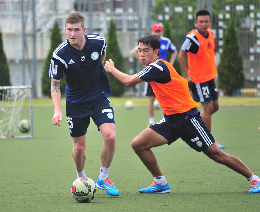 圖:大埔前鋒祖爾基比斯(左)曾踢澳職\本報攝
