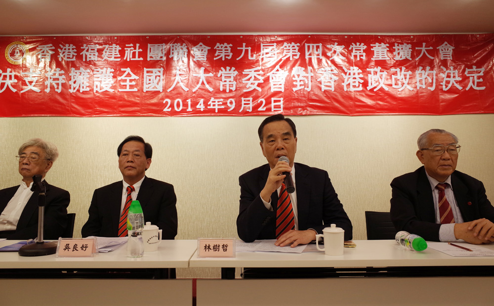 福建社團聯會榮譽主席李群華表示,全國人大是國家最高權力機構,有關決定代表香港可實行普選,希望會員能向分會和鄉親廣泛傳達人大決定的信息,表態支持,為下一代創造更好的條件。