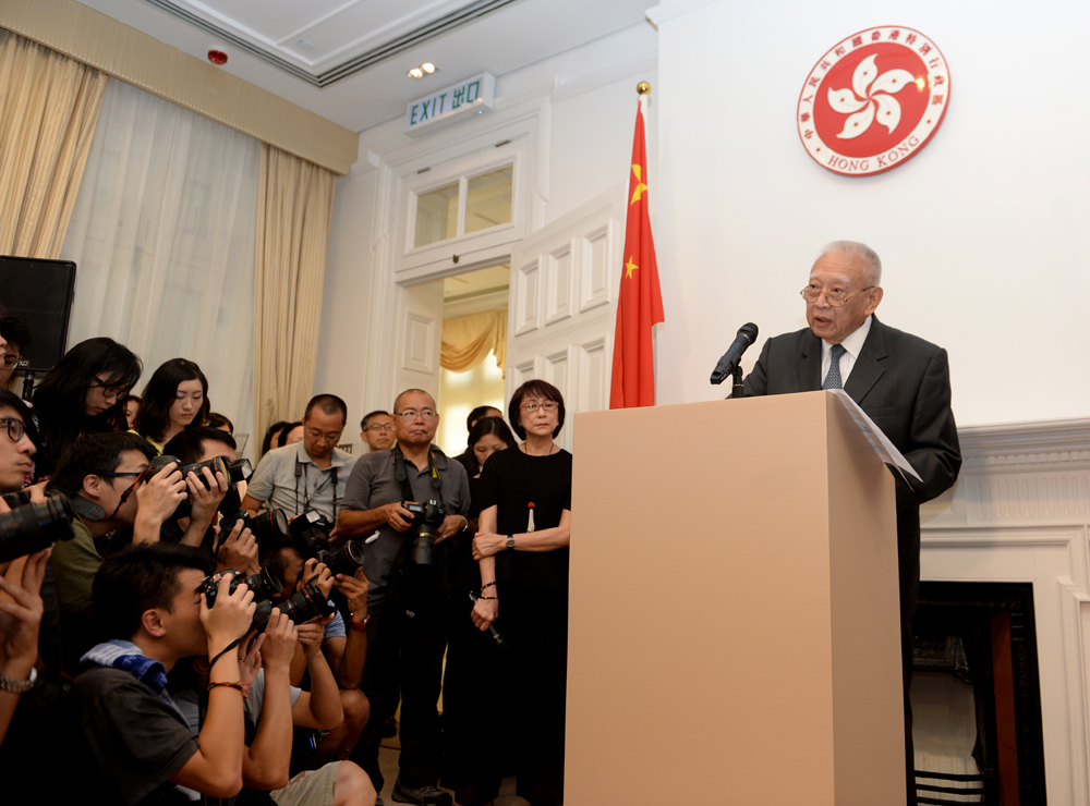 圖:董建華昨會見記者時表示,堅決反對「佔中」,因為「佔中」違法,也不贊成學生罷課\本報記者林良堅攝