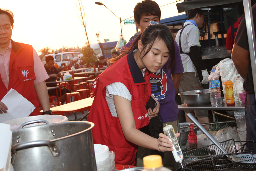圖:新竹衛生局7日前往夜市稽查,並用儀器檢驗。\中央社