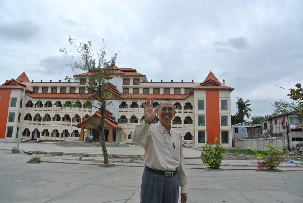 圖:緬甸明德學校的總負責人陳自翰向記者告別\康靜攝