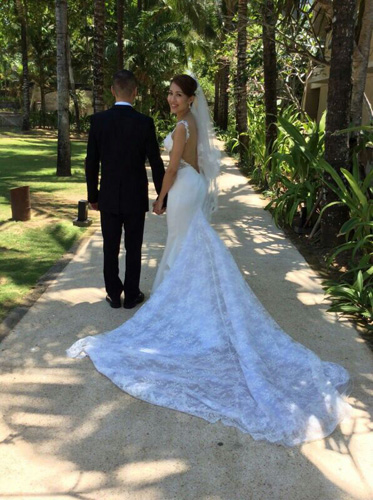 至於返港後會否補擺喜酒?敏之直言不會,暫時亦沒有造人計劃,因希望繼續工作及好好打理自己的曲奇餅店。她說:「我想做生意和先過二人世界,度蜜月也沒時間,因返港後就要去新加坡工作,遲些才補度蜜月。」敏之昨日向傳媒發放七張照片,其中她拖住老公的婚照,僅見新郎哥的背影,未有露正面,她解釋稱,因老公不喜歡出鏡。