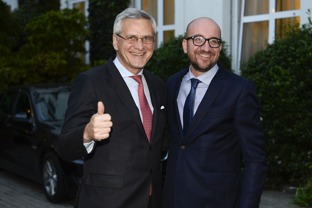 圖:比利時組閣者克里斯.佩特斯和新首相夏爾.米歇爾(右)/法新社