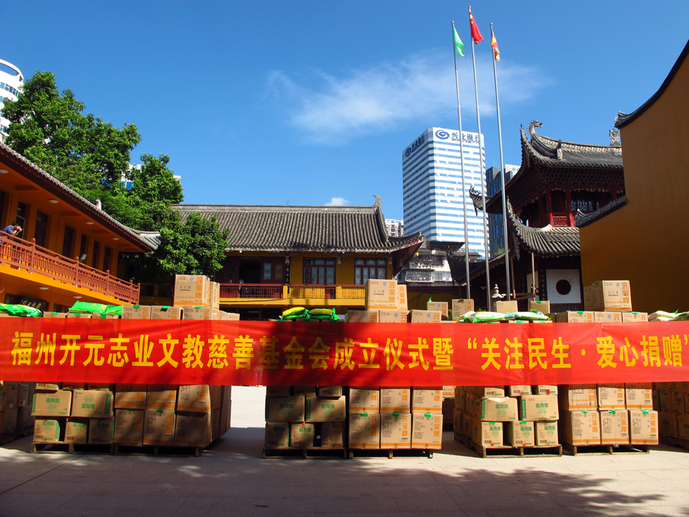 成立儀式上舉行了「關注民生.愛心捐贈」活動,新成立的基金會將15萬元的愛心物資捐贈給連江縣小滄?族民族鄉東風村、福州市兒童福利院、福州市社會福利院及金山街道、鼓東社區等地的貧困家庭。釋本性法師在基金會成立儀式上致辭說:「經是念出來的,而慈善是靠做出來的。福州開元寺歷來就有布施窮人的傳統,曾創辦過佛教醫院(今福州市人民醫院)、義診所,此前還創立了勵青獎學基金、佛教老年僧尼醫藥救助基金,今後還將繼續為社會慈善事業做出應有貢獻。」