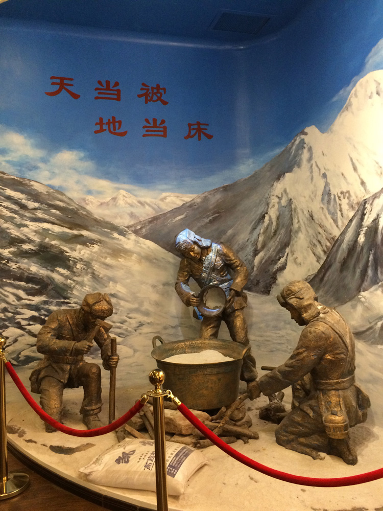 1953年冬,川藏公路即將全線貫通之際,6名戰士背?鍋,攜帶糧秣,在築路大軍的炮聲中,在二郎山的鬼門關下搭起了窩棚,支起鍋給過往車隊燒水煮粥,建起兵站的雛形。