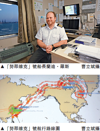 「努那維克」號的船長蘭迪.羅斯(Randy Rose)是世上第一名穿越北冰洋的船長。他介紹,「努那維克」號航行途中經過加拿大、美國、俄羅斯、日本、韓國、中國共六個國家19個海域(1.迪塞普申灣(欺騙灣)、2.哈德孫海峽、3.戴維斯海峽、4.巴芬灣、5.蘭卡斯特峽灣、6.巴柔海峽、7.麥爾維耶子爵峽灣、8.威爾士王子海峽、9.阿蒙德森灣、10.布佛海、11.楚科奇海、12.白令海峽、13.白令海、14.北太平洋、15.津輕海峽、16.朝鮮海峽、17.黃海、18.渤海、19.?魚圈)到達中國。