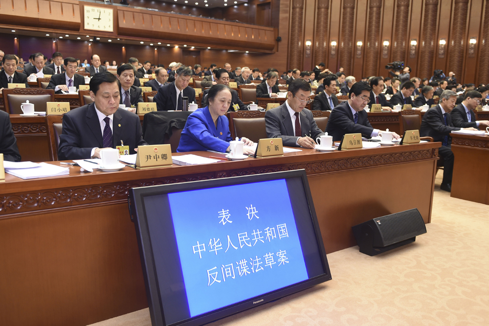 圖:十二屆全國人大常委會第十一次會議經表決通過了反間諜法/中新社
