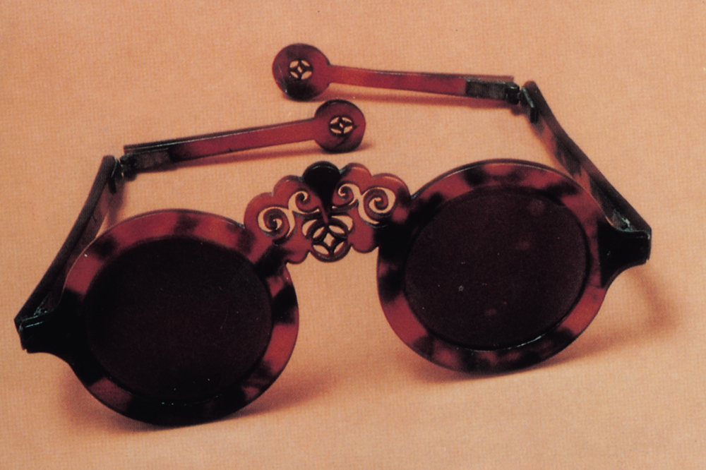 有些友人喜愛蒐藏中外古老眼鏡。例如附圖為晚清用玳瑁殼作框與臂、茶晶作鏡片的骨董眼鏡(折臂式),框近鼻樑處鏤空。由於玳瑁今已成為受保護的瀕危動物,故這類珍品更覺罕貴難得。真舊玳瑁難完美,因容易受蟲蛀,也易受濕熱氣候環境所侵,逐漸失去光澤。日常保養可用少量優質初榨純橄欖油塗抹,因內含鐵丹,具保護作用。