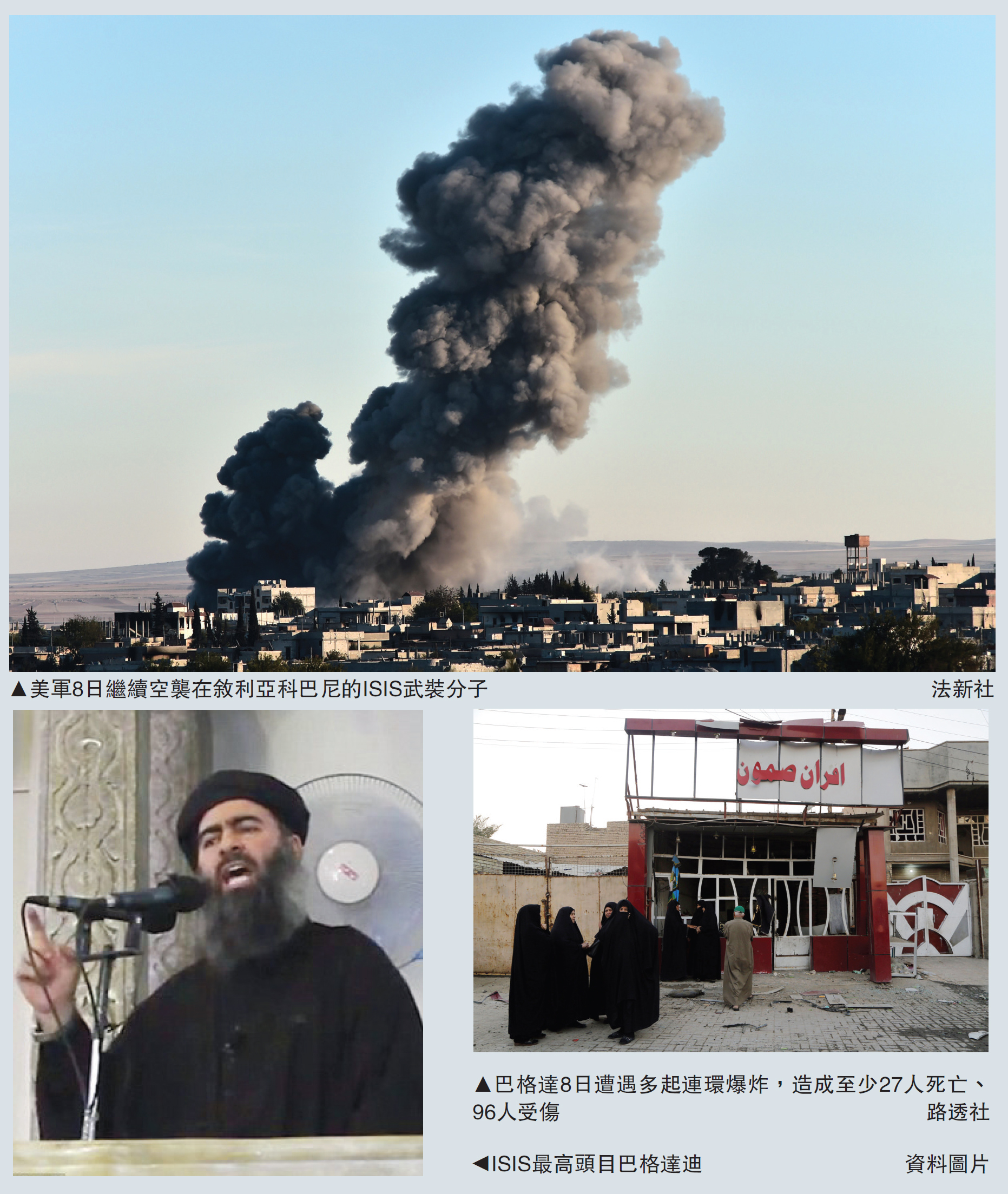 圖:美軍8日繼續空襲在敘利亞科巴尼的ISIS武裝分子/法新社