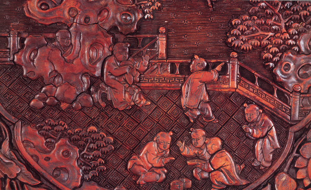 圖:剔紅嬰戲圖盤放大三倍之後,可見人物生動表情