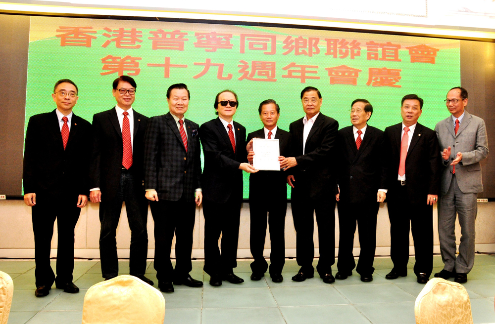 【大公報訊】香港普寧同鄉聯誼會日前在美孚金殿宴會廳舉行慶祝成立19周年會慶歡宴,筵開30席,鄉情洋溢,氣氛熱烈。該會副會長方展禹代表會長張成雄致詞表示,該會19年來堅持愛國愛港愛家鄉,隊伍不斷壯大。如今面對香港發生的非法「佔中」事件,該會表示強烈反對,並成為反佔中大聯盟的成員,以實際行動力撐政府和警方。