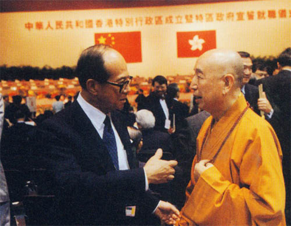 圖:香港佛教聯合會會長覺光法師與長實集團主席李嘉誠相識數十年,彼此法緣深厚/網上圖片