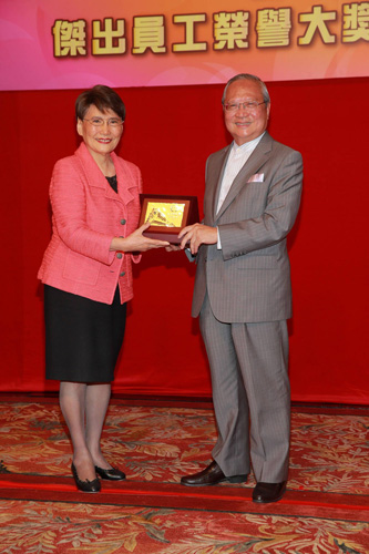 圖:梁乃鵬(右)獲方逸華頒予紀念金牌