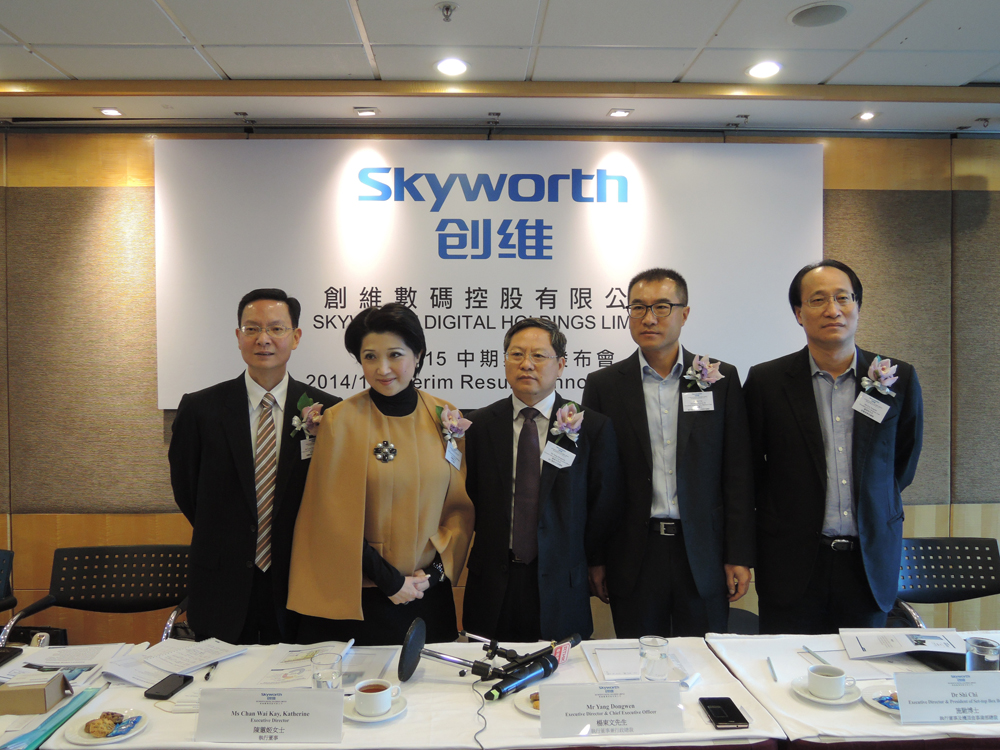 圖:左起:創維數碼財務總監林成財、執行董事陳蕙姬、行政總裁楊東文、執行董事施馳、副總裁劉棠枝\大公報攝